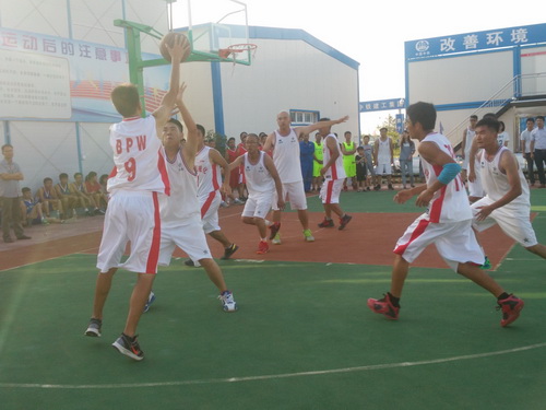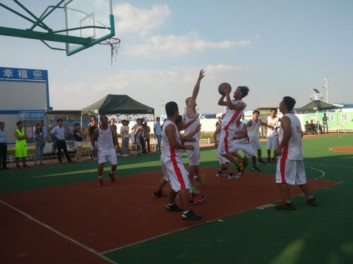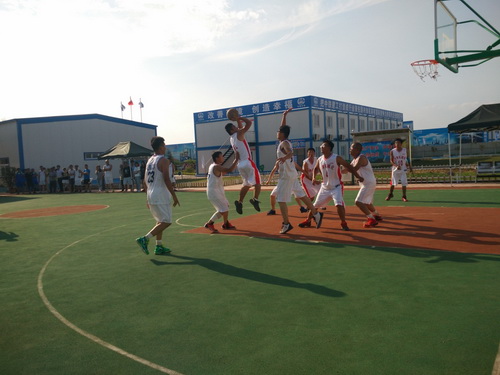 在此次的比賽中,參賽的單位有監(jiān)理3標中企建發(fā)、1標中鐵十二局、4標四川場道、3標中國華西、5標上海路橋、8標中鐵航空港、10標中水十六局、6標甘肅機械化共8支籃球隊進行參賽,建設單位也派隊參加,進行友誼賽,我們跟兄弟單位中鐵航空港,上海路橋,中水十六局、四川場道一決高下,最后入圍四強,在決賽的比賽中,我們再次遇見實力強勁的中水十六局,雙方隊員在籃球比賽現(xiàn)場氣氛熱烈,隊員們積極進攻,嚴密防守,精彩的配合,巧妙的搶斷,不時的將比賽氣氛推向高潮。天氣雖然炎熱,但絲毫沒有影響隊員的熱情,盡管兩支球隊都是業(yè)余籃球愛好者,但他們在比賽中均表現(xiàn)出較好的團隊協(xié)作能力,一群年輕人激情飛揚,帶球、傳球、搶斷、上籃,賽場對抗激烈,隊員個個揮汗如雨,最后在我方隊員的努力拼搏下,以32:30的比分,贏得第一。
