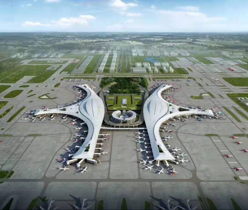 成都天府國際機(jī)場一期工程飛行區(qū)等級為4F,建設(shè)“兩縱一橫”共3條跑道、60萬平方米的航站樓、246個停機(jī)位以及相應(yīng)的空管工程、供油工程、航空公司基地工程等設(shè)施。