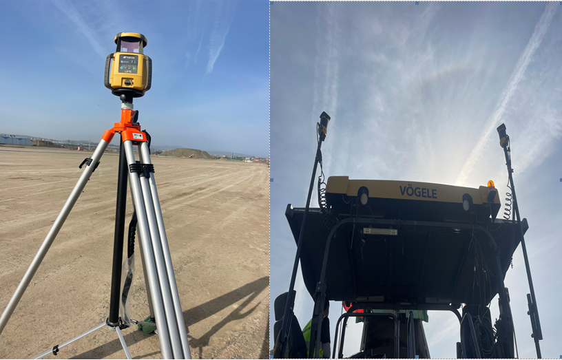 我司首次在烏魯木齊機(jī)場使用mmGPS 3D攤鋪技術(shù),mmGPS 3D攤鋪技術(shù)是指通過衛(wèi)星全球?qū)Ш蕉ㄎ幌到y(tǒng)和激光高精度測量系統(tǒng),立體控制攤鋪的高程精度和平面精度。該技術(shù)克服了常規(guī)掛鋼線施工時掛鋼線下垂、傳感器跳動等問題,同時減少了測量放樣的工作內(nèi)容,很好地控制了結(jié)構(gòu)層厚度、高程及平整度,尤其在多機(jī)聯(lián)鋪作業(yè)方式下效果明顯,實現(xiàn)了“機(jī)械化換人、自動化減人”的理念,減少了人員投入的同時減少了材料的浪費(fèi),降低了項目的安全風(fēng)險,產(chǎn)生了明顯的經(jīng)濟(jì)效益。