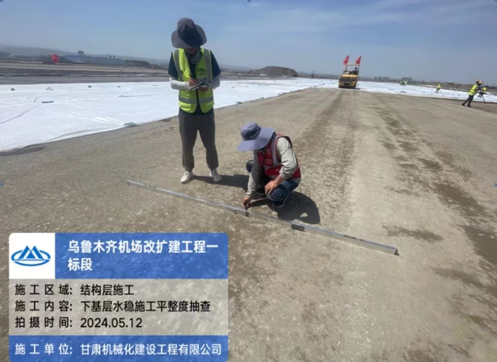 2024年5月11日,伴隨著第一車水泥穩(wěn)定砂礫混合料緩緩倒入攤鋪機(jī)料斗,標(biāo)志著由我司承建的烏魯木齊機(jī)場一標(biāo)段水穩(wěn)基層施工正式拉開序幕。